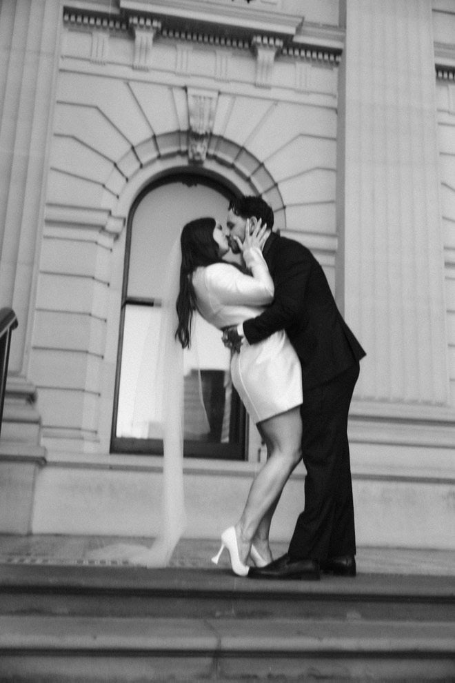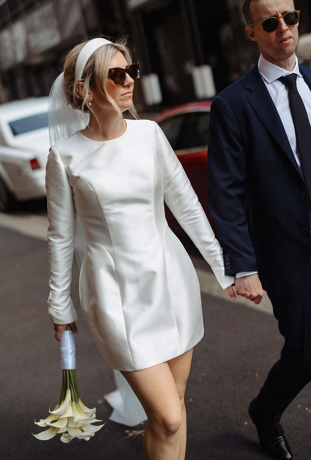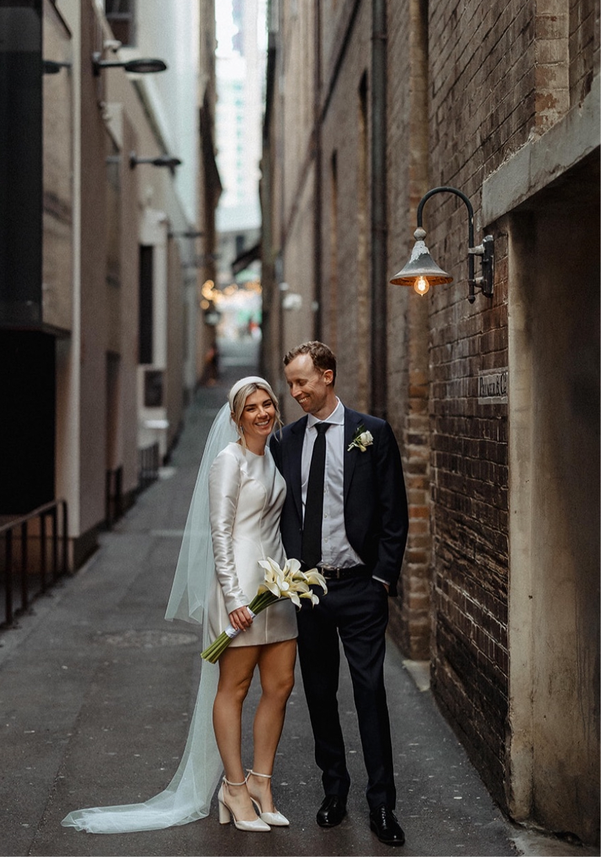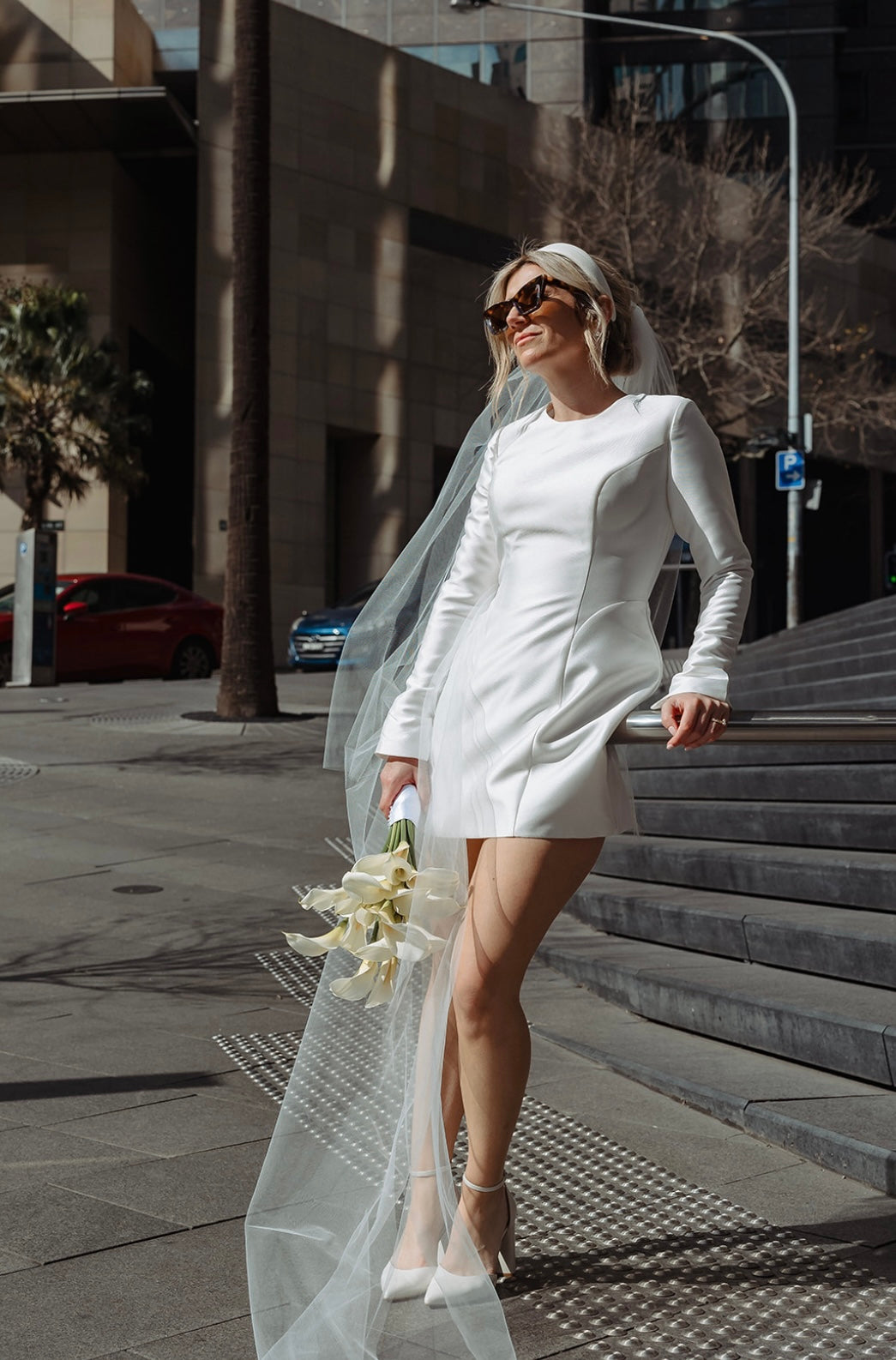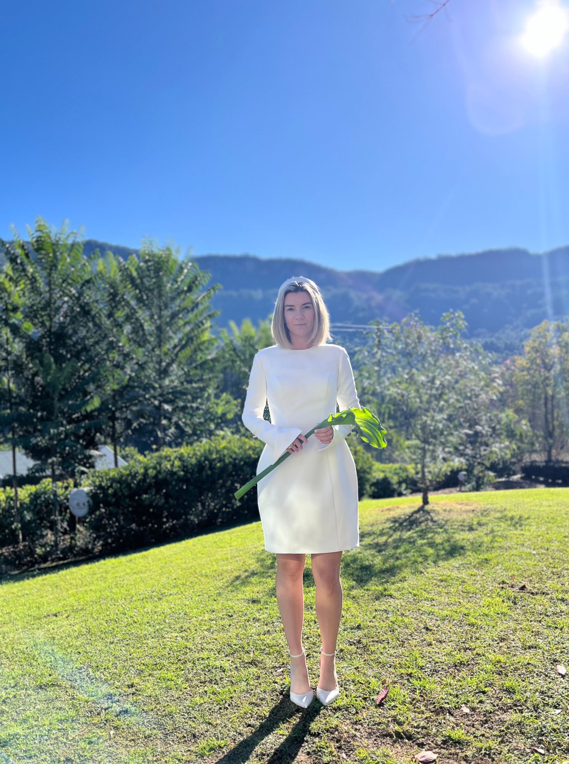 Introducing Bianca, the dress that effortlessly transitions from an elegant ceremony to a chic soirée. Crafted in luxurious crepe or matte mikado, Bianca features long, flowing sleeves with a subtle slit and flare. Her bubble skirt creates a flattering silhouette that enhances every figure.