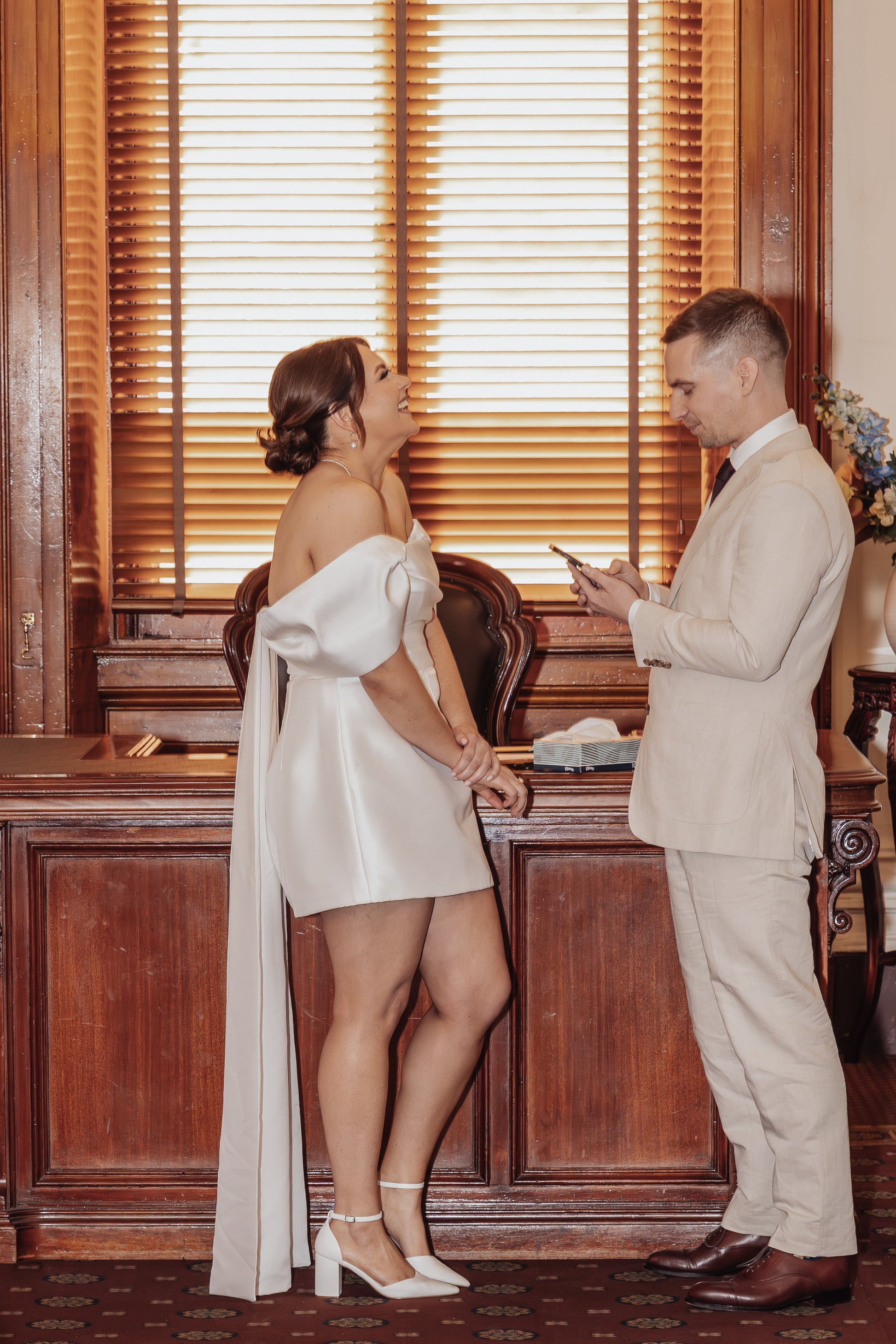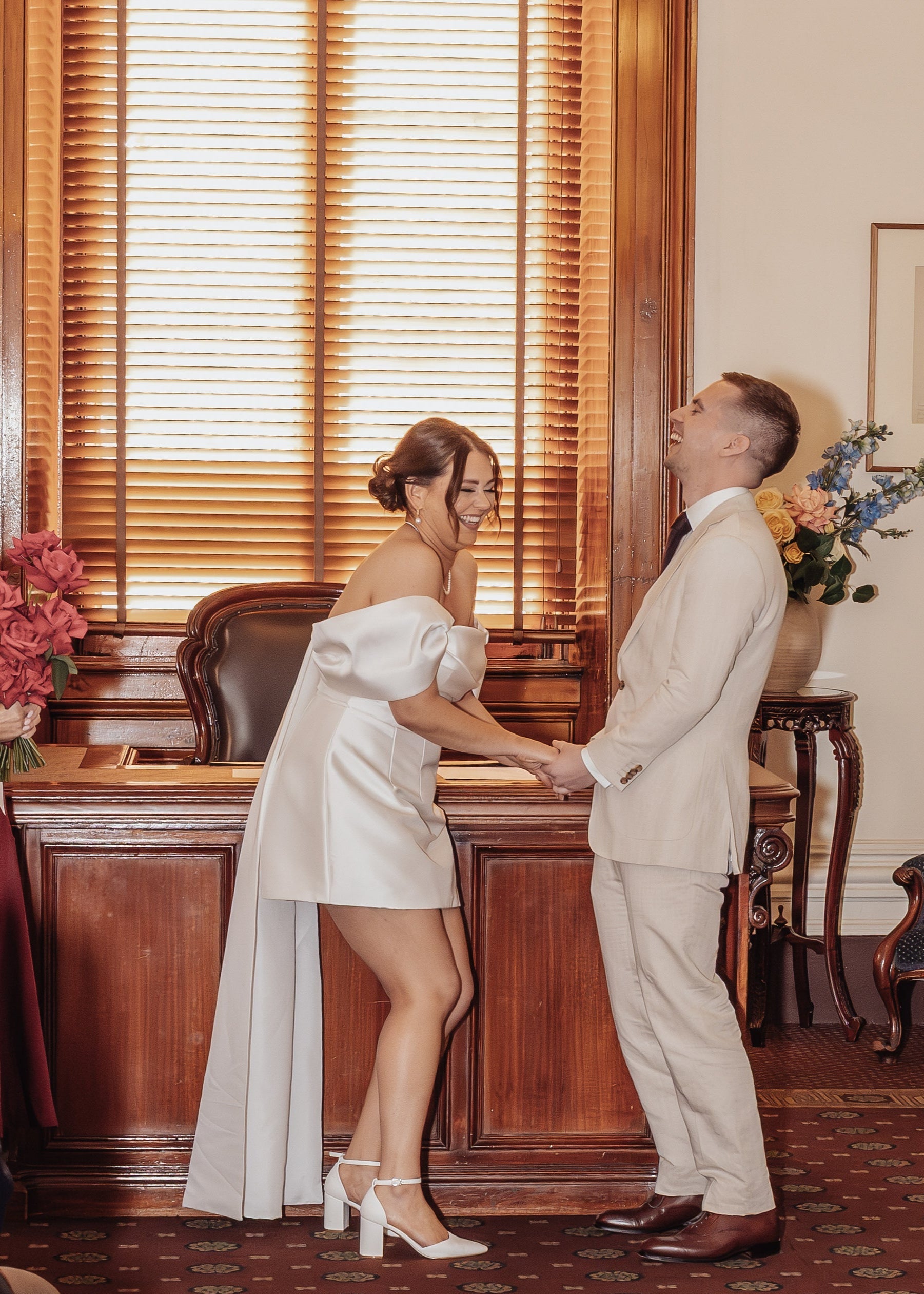 Lucy's mikado construction ensures she photographs beautifully, with the fabric's subtle sheen catching light perfectly while maintaining its crisp, tailored appearance. Her versatility makes her ideal for the modern bride who wants options throughout her wedding day, seamlessly transitioning from dramatic ceremony entrance to sleek reception ready silhouette.