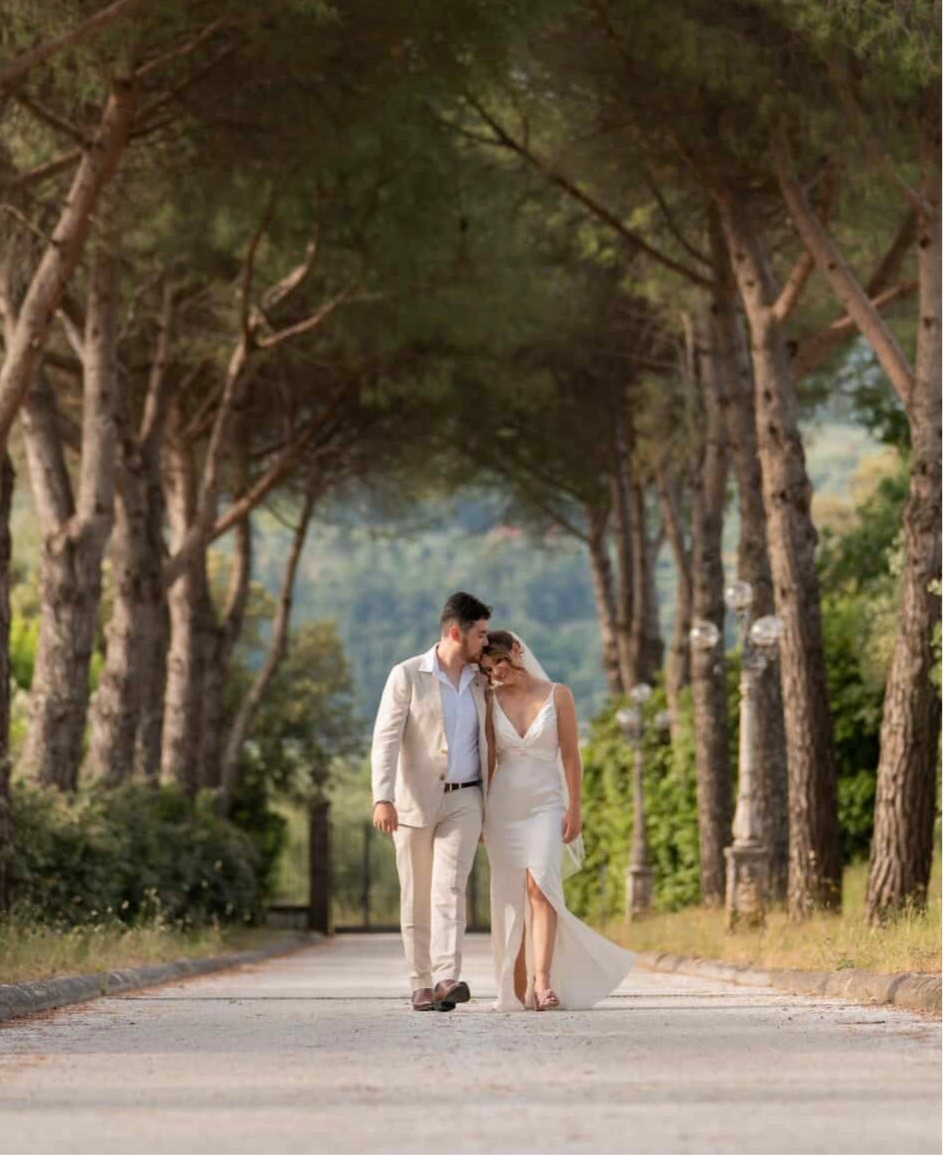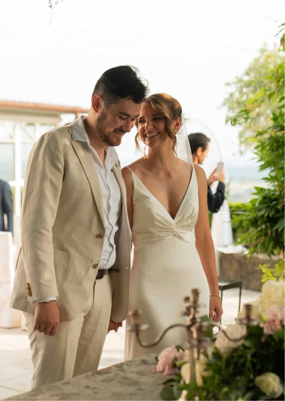 The Rosie Gown: shown here in 20mm silk and featuring a plunging neckline, she's designed for the understated bride, creating a flattering silhouette that flows effortlessly into a sleek skirt with a 30cm train.
